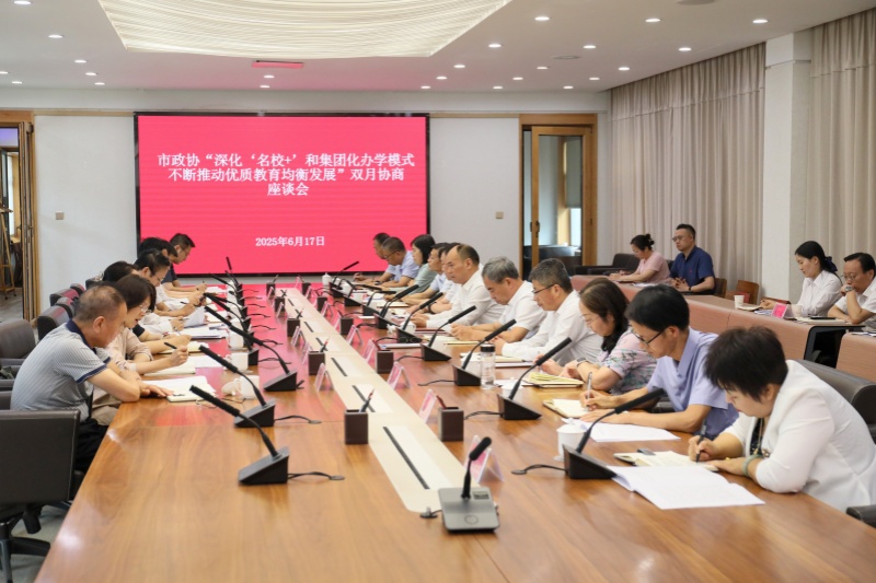 6月17日,市政協(xié)召開(kāi)“深化‘名校+’和集團(tuán)化辦學(xué)模式 不斷推動(dòng)優(yōu)質(zhì)教育均衡發(fā)展”雙月協(xié)商座談會(huì)。市政協(xié)主席劉西林和市委常委、副市長(zhǎng)劉浩出席并講話,市政協(xié)副主席左車寧主持。