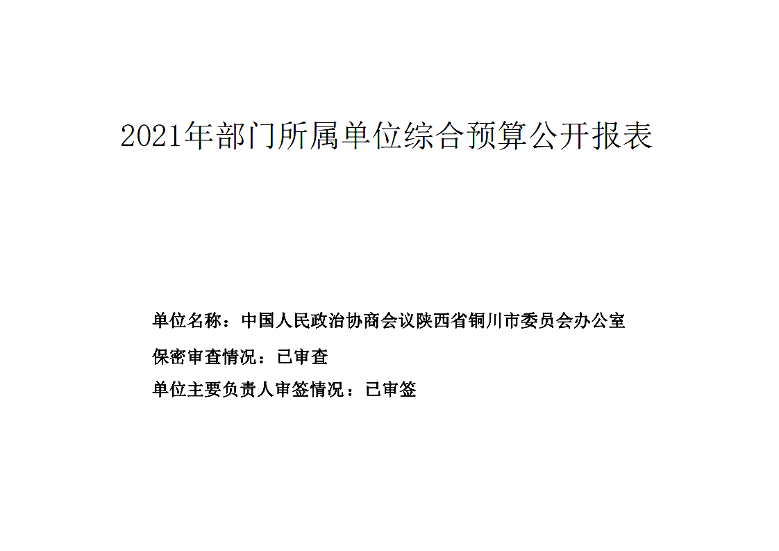 中國人民政治協(xié)商會議陜西省銅川市委員會辦公室所屬單位(本級)2021年公開預(yù)算