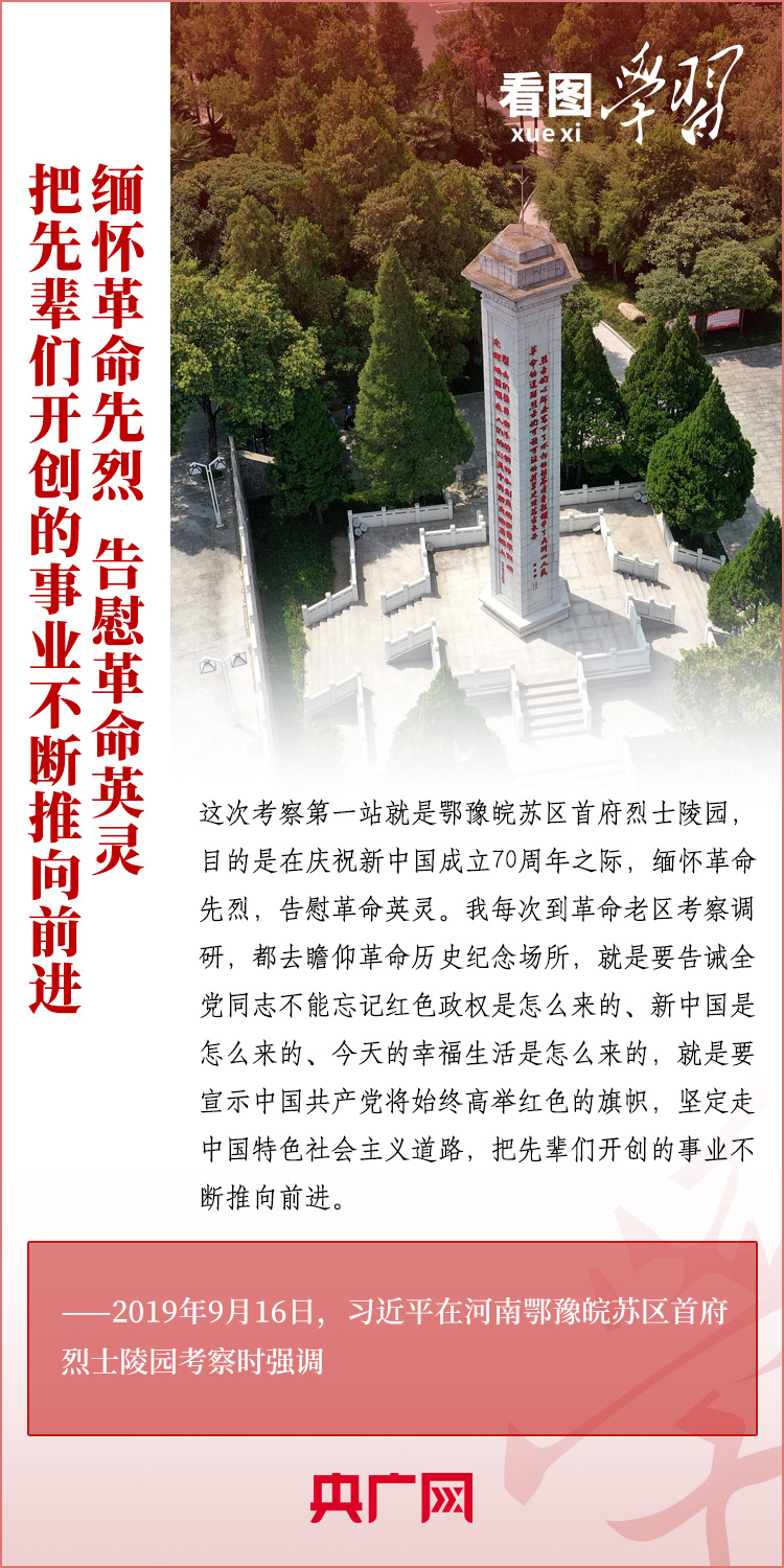 緬懷革命前輩,告慰先烈英靈。黨的十八大以來(lái),習(xí)近平總書記多次在重大活動(dòng)、赴地方調(diào)研時(shí),或深情追憶革命前輩、英雄烈士,或向革命紀(jì)念場(chǎng)館禮敬鮮花、關(guān)心看望英烈親屬。總書記勉勵(lì)大家要繼承革命先烈遺志,把他們流血犧牲打下的紅色江山守護(hù)好、建設(shè)好,以實(shí)現(xiàn)中華民族偉大復(fù)興來(lái)告慰革命前輩和先烈。
