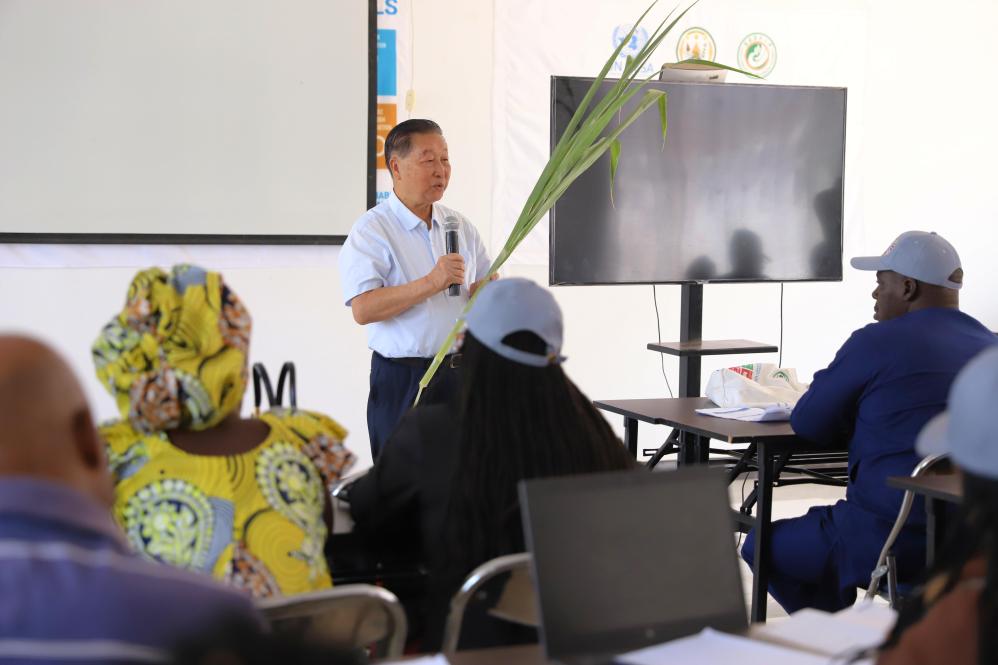 8月4日,在盧旺達(dá)南方省胡耶區(qū),林占熺為非洲地區(qū)菌草技術(shù)培訓(xùn)班授課。新華社發(fā)(黃萬(wàn)晴攝)
