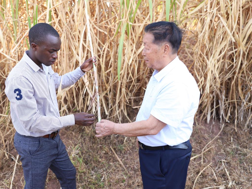 8月4日,在盧旺達(dá)南方省,林占熺為當(dāng)?shù)鼐莘N植戶奧貝德答疑解惑。新華社發(fā)(黃萬(wàn)晴攝)