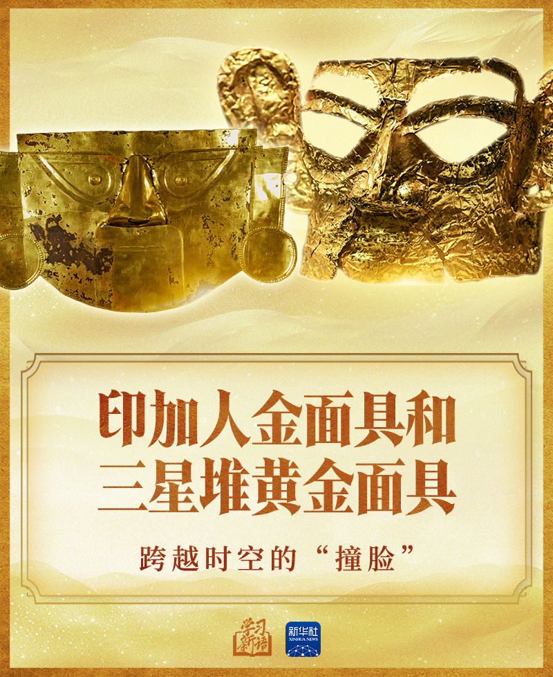 來自秘魯西坎文化的黃金面具與中國三星堆出土的黃金面具,展現(xiàn)了安第斯人和古蜀人一樣,都喜歡制造黃金面具,印證了中秘兩國的友好情誼和中秘文明交相輝映的歷史。