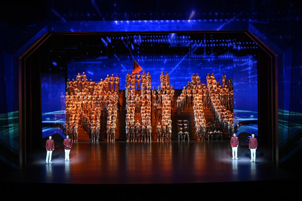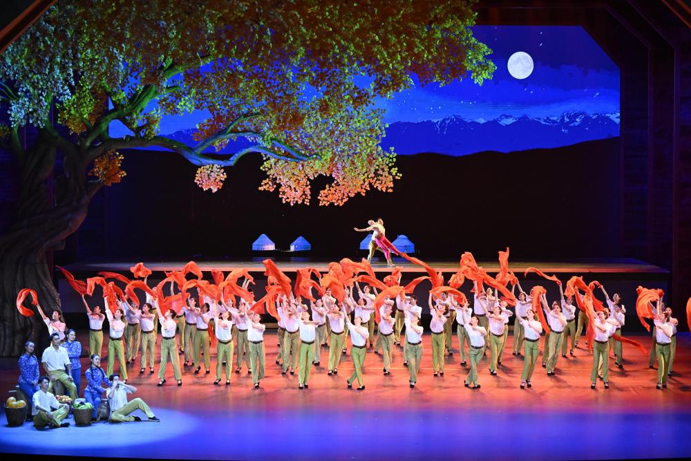 演出共3個(gè)篇章,展現(xiàn)新疆社會(huì)主義建設(shè)的火熱場景,表現(xiàn)改革開放給新疆帶來的蓬勃生機(jī),描繪新疆各族兒女同心筑夢新時(shí)代的美好圖景。