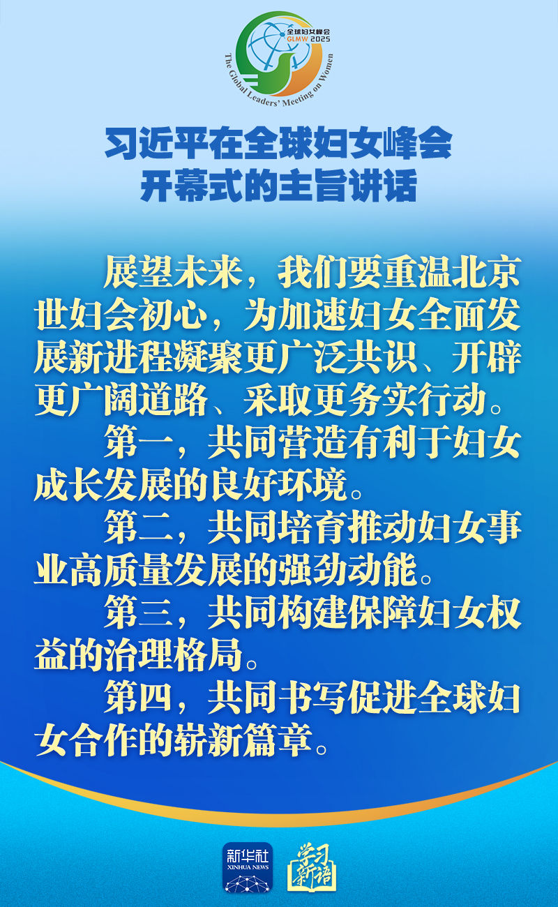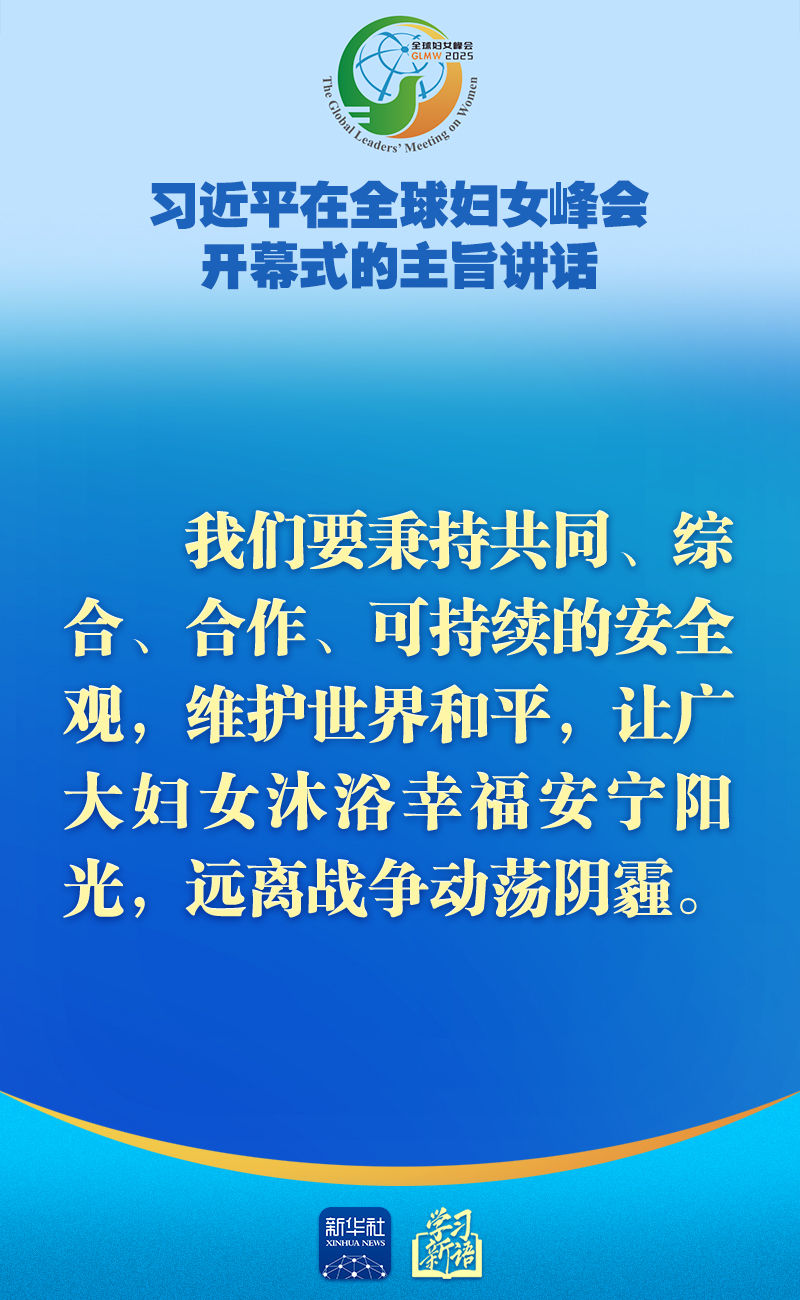 10月13日上午,國家主席習(xí)近平在北京國家會議中心出席全球婦女峰會開幕式并發(fā)表題為《弘揚(yáng)北京世婦會精神 加速婦女全面發(fā)展新進(jìn)程》的主旨講話。講話金句,一起學(xué)習(xí)!