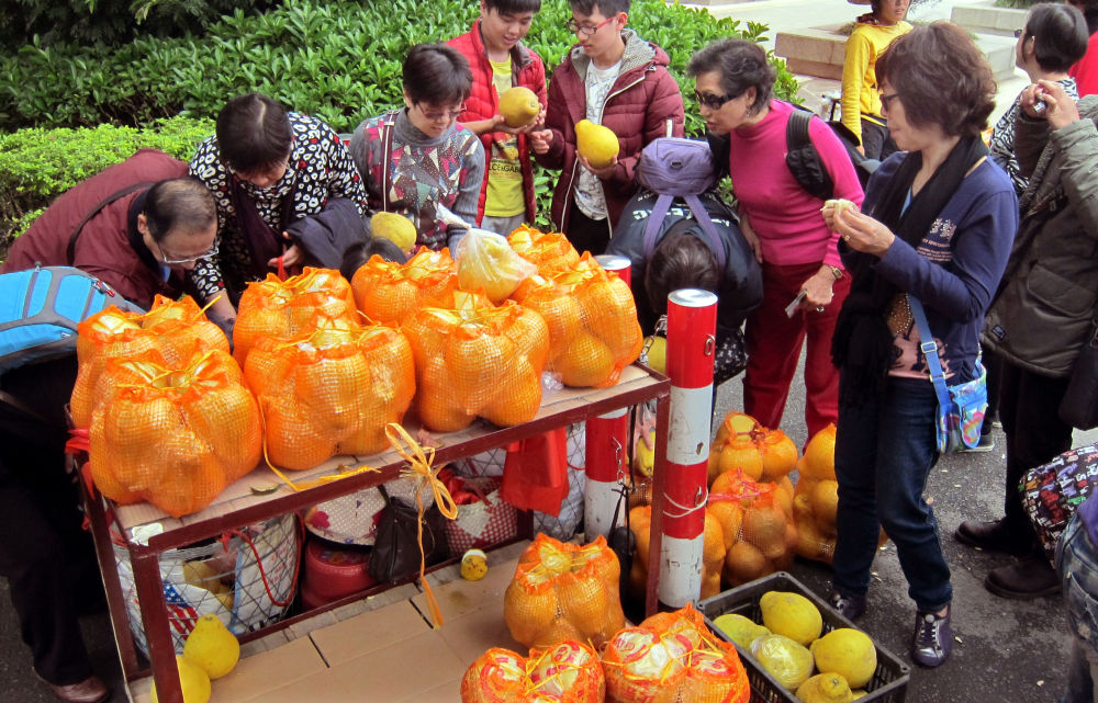 2012年12月29日,游客在廣東省梅州市選購(gòu)柚子。