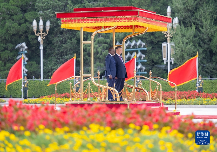 塔隆抵達(dá)時(shí),禮兵列隊(duì)致敬。兩國元首登上檢閱臺(tái),軍樂團(tuán)奏中貝兩國國歌,天安門廣場鳴放21響禮炮。塔隆在習(xí)近平陪同下檢閱中國人民解放軍儀仗隊(duì),并觀看分列式。