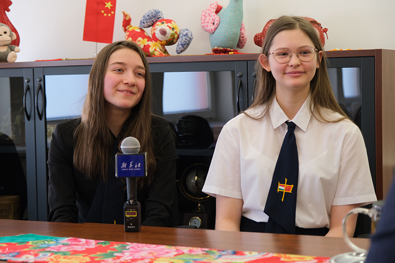 2月7日,在匈牙利首都布達佩斯,匈中雙語學(xué)校學(xué)生胡靈月(左)和宋智孝接受新華社記者采訪。新華社記者 鄧耀敏 攝