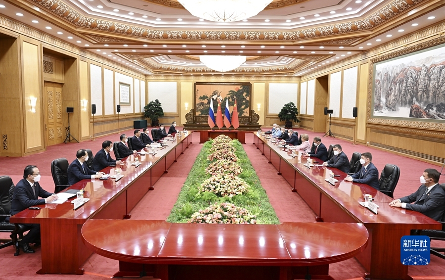 習(xí)近平指出,在雙方共同努力下,中俄關(guān)系始終保持健康穩(wěn)定發(fā)展勢(shì)頭,各領(lǐng)域合作穩(wěn)步推進(jìn),兩國(guó)世代友好的社會(huì)基礎(chǔ)和民意基礎(chǔ)更加牢固。今年3月,我對(duì)俄羅斯進(jìn)行國(guó)事訪問,同普京總統(tǒng)就深化兩國(guó)全面戰(zhàn)略協(xié)作和各領(lǐng)域務(wù)實(shí)合作達(dá)成新的重要共識(shí)。發(fā)展中俄關(guān)系是兩國(guó)基于各自國(guó)家和人民根本利益作出的戰(zhàn)略選擇。中方愿繼續(xù)同俄方一道,發(fā)展守望相助、深度融通、開拓創(chuàng)新、普惠共贏的新時(shí)代全面戰(zhàn)略協(xié)作伙伴關(guān)系,助力兩國(guó)發(fā)展振興,推動(dòng)建設(shè)繁榮穩(wěn)定、公平公正的世界。