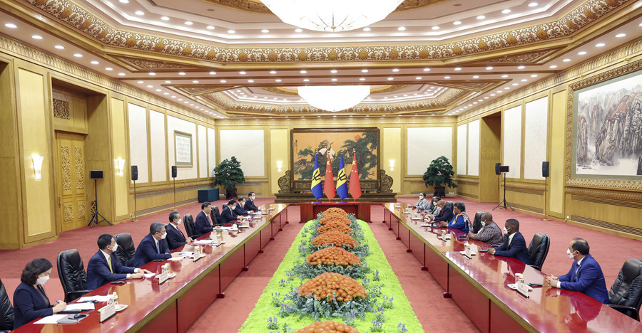 習(xí)近平指出,面對(duì)世界百年未有之大變局,廣大發(fā)展中國(guó)家要加強(qiáng)團(tuán)結(jié)合作,踐行真正的多邊主義,反對(duì)冷戰(zhàn)思維和陣營(yíng)對(duì)抗,維護(hù)國(guó)際關(guān)系基本準(zhǔn)則,維護(hù)國(guó)際公平正義,推動(dòng)構(gòu)建人類命運(yùn)共同體。中方充分理解巴巴多斯等小島嶼發(fā)展中國(guó)家在氣候變化領(lǐng)域的訴求,愿繼續(xù)加強(qiáng)應(yīng)對(duì)氣候變化南南合作,為包括巴巴多斯在內(nèi)的發(fā)展中國(guó)家提供幫助和支持。中方從戰(zhàn)略高度和長(zhǎng)遠(yuǎn)角度重視同加勒比關(guān)系,將繼續(xù)為加方經(jīng)濟(jì)社會(huì)發(fā)展提供力所能及幫助。