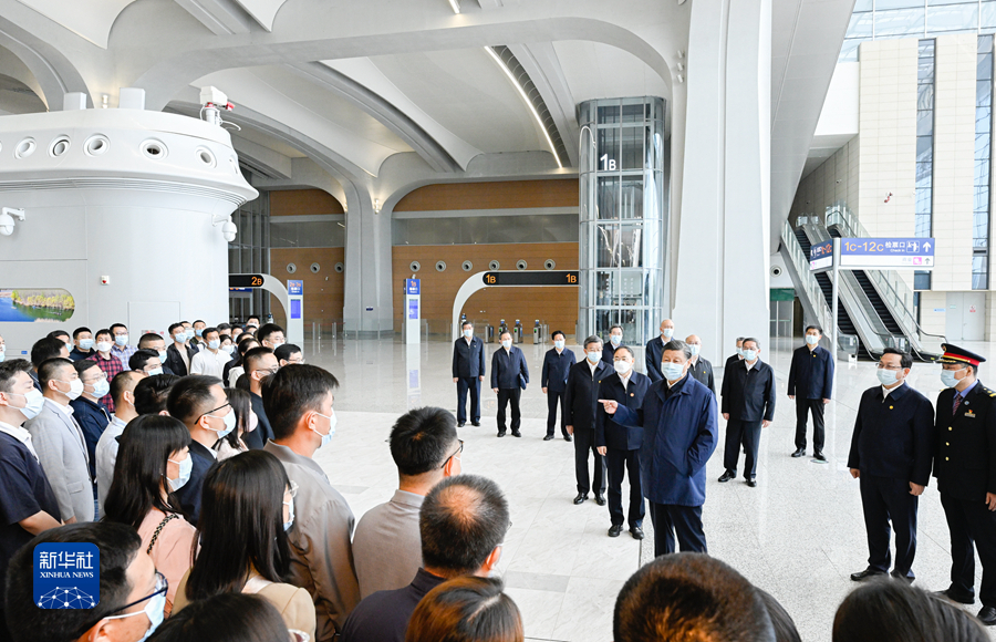 當(dāng)天上午,習(xí)近平乘高鐵前往雄安新區(qū),抵達(dá)后首先考察了雄安站的建設(shè)運(yùn)行情況。雄安站是雄安新區(qū)開(kāi)工建設(shè)的第一個(gè)重大基礎(chǔ)設(shè)施項(xiàng)目,具有標(biāo)志性意義。習(xí)近平先后察看站臺(tái)、候車大廳、站外廣場(chǎng),了解雄安站建設(shè)運(yùn)營(yíng)和所在的昝崗片區(qū)規(guī)劃建設(shè)情況。習(xí)近平指出,雄安站是雄安新區(qū)的交匯車站,要進(jìn)一步完善聯(lián)通雄安站和雄安新區(qū)的交通“微細(xì)血管”,提升人流物流聚集和疏散的效率。要把昝崗片區(qū)建設(shè)成為高端高新產(chǎn)業(yè)集聚區(qū),讓各方來(lái)客一到雄安,就能感受到雄安新區(qū)撲面而來(lái)的現(xiàn)代化新氣象。
