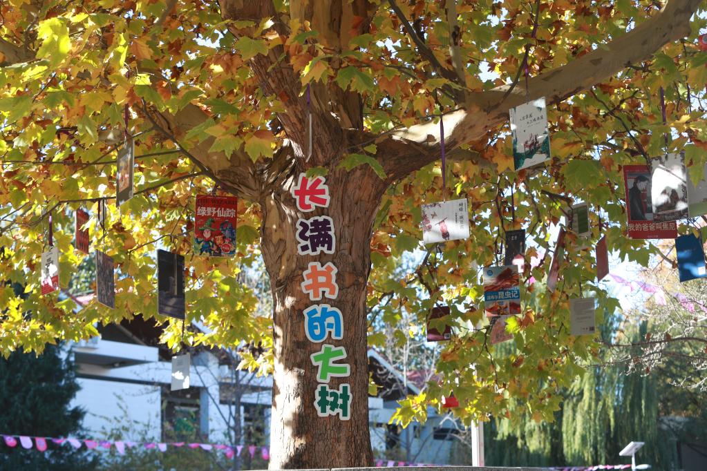 在她的校園里,有一棵“長滿書的大樹”,掛滿了《神筆馬良》《西游記》《可愛的中國》等經(jīng)典書籍。教學樓走廊里、教室里,隨處可見各種圖書。踏著閱讀的階梯,祖國的花朵茁壯成長。
