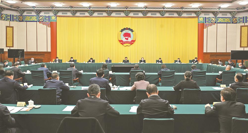 4月14日,十四屆全國政協(xié)第二次雙周協(xié)商座談會在北京召開,中共中央政治局常委、全國政協(xié)主席王滬寧主持會議。記者 姜貴東 攝