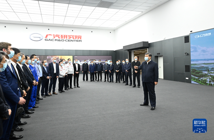 習近平隨后來到廣汽埃安新能源汽車股份有限公司考察。他走進企業(yè)展廳、總裝車間、電池生產車間等,了解企業(yè)突破關鍵核心技術和推動制造業(yè)高端化、智能化、綠色化等進展情況。在廣汽研究院,習近平仔細察看智能網(wǎng)聯(lián)實驗室、模型設計實驗室等,并同科技人員、企業(yè)家、職工、外資企業(yè)代表等交流。習近平指出,中國改革開放政策將長久不變,永遠不會自己關上開放的大門。一切愿意與我們合作共贏的國家,我們都愿意與他們相向而行,推動世界經(jīng)濟共同繁榮發(fā)展。習近平強調,中國是個大國,要重視實體經(jīng)濟,走自力更生之路。關鍵核心技術要立足自主研發(fā),也歡迎國際合作。要加強教育和人才培養(yǎng),夯實科技自立自強根基。