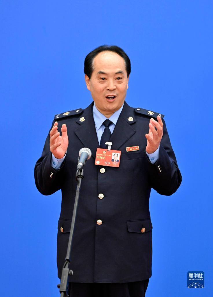 3月11日,全國政協(xié)十四屆一次會議第三場“委員通道”集體采訪活動在北京人民大會堂新聞發(fā)布廳舉行。這是全國政協(xié)委員丁佐宏接受媒體采訪。新華社記者 陳益宸 攝
