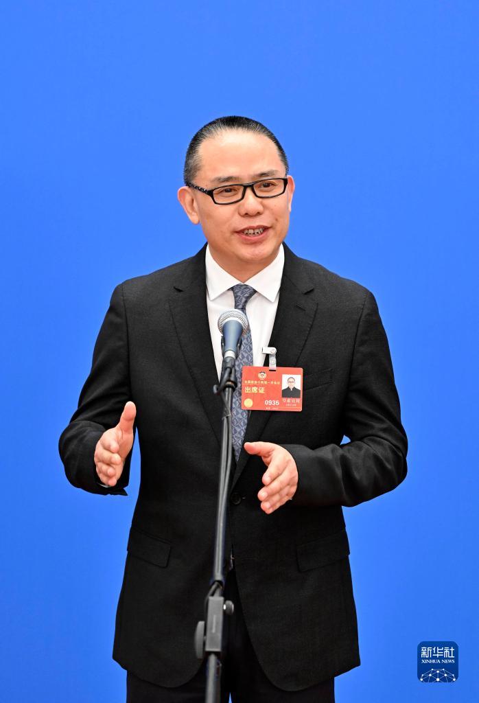 3月11日,全國政協(xié)十四屆一次會議第三場“委員通道”集體采訪活動在北京人民大會堂新聞發(fā)布廳舉行。這是全國政協(xié)委員韋朝暉接受媒體采訪。新華社記者 陳益宸 攝