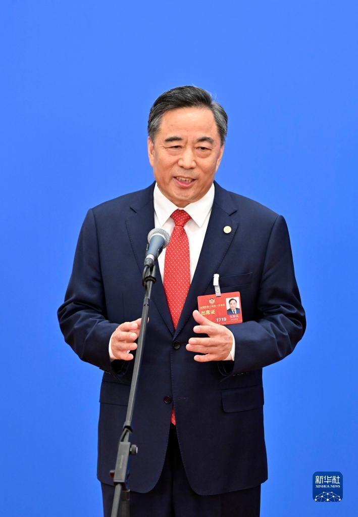 3月11日,全國政協(xié)十四屆一次會議第三場“委員通道”集體采訪活動在北京人民大會堂新聞發(fā)布廳舉行。這是全國政協(xié)委員范扎根接受媒體采訪。新華社記者 陳益宸 攝