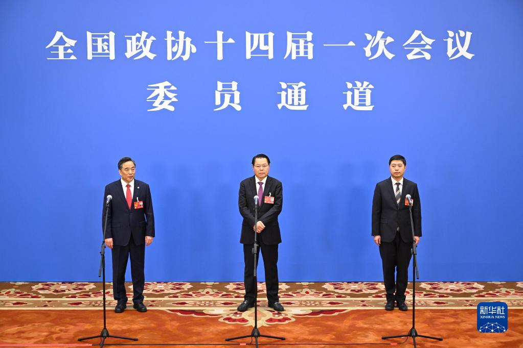 3月11日,全國政協(xié)十四屆一次會議第三場“委員通道”集體采訪活動在北京人民大會堂新聞發(fā)布廳舉行。新華社記者 陳益宸 攝