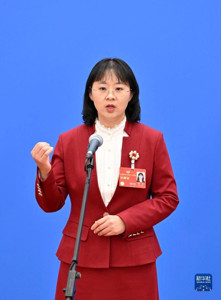 3月11日,全國政協(xié)十四屆一次會議第三場“委員通道”集體采訪活動在北京人民大會堂新聞發(fā)布廳舉行。這是全國政協(xié)委員余靜接受媒體采訪。新華社記者 陳益宸 攝