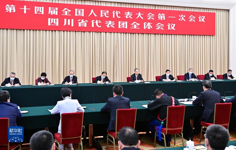 3月5日,中共中央政治局常委趙樂際參加十四屆全國人大一次會議四川代表團的審議。新華社記者 岳月偉 攝