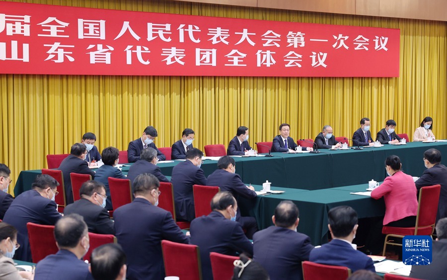 3月5日,國務(wù)院副總理韓正參加十四屆全國人大一次會議山東代表團(tuán)的審議。新華社記者 姚大偉 攝