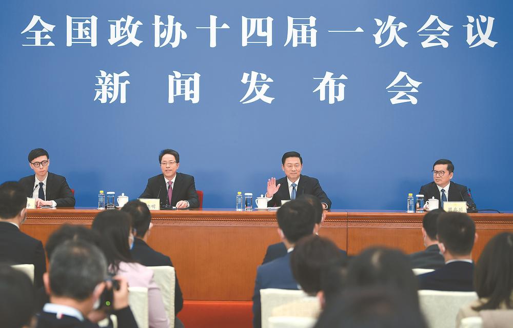 16時(shí)30分,新聞發(fā)言人郭衛(wèi)民步入大廳,全國(guó)政協(xié)十四屆一次會(huì)議新聞發(fā)布會(huì)正式開始。