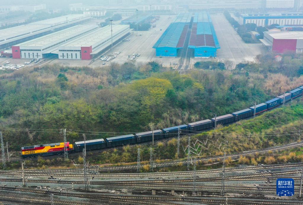 1月22日,農(nóng)歷新年首趟西部陸海新通道鐵海聯(lián)運(yùn)班列從重慶團(tuán)結(jié)村中心站發(fā)車(chē)(無(wú)人機(jī)照片)。新華社記者 劉潺 攝