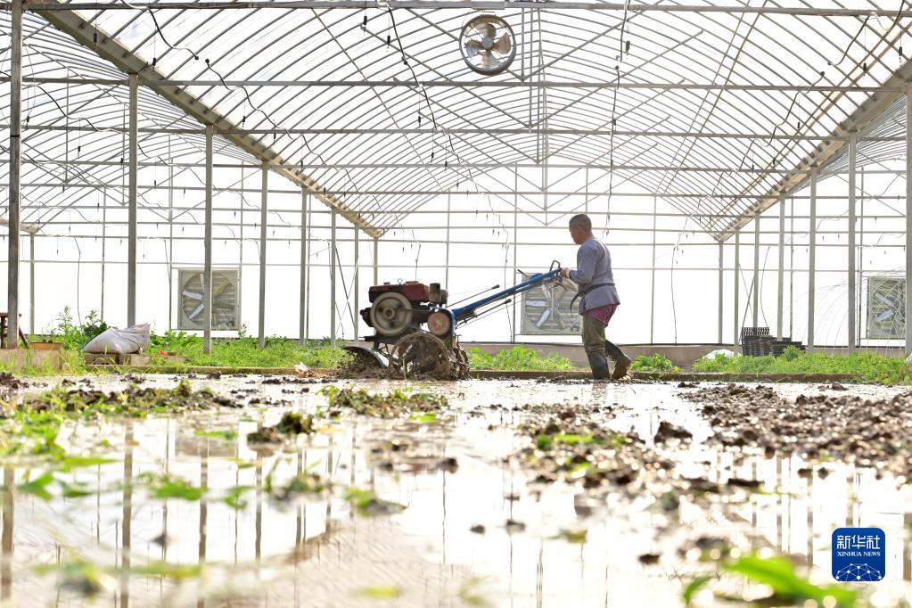 1月29日,在湖南省婁底市雙峰縣青樹(shù)坪鎮(zhèn)歸古新村,農(nóng)民駕駛農(nóng)機(jī)在大棚內(nèi)整地。新華社發(fā)(李建新 攝)