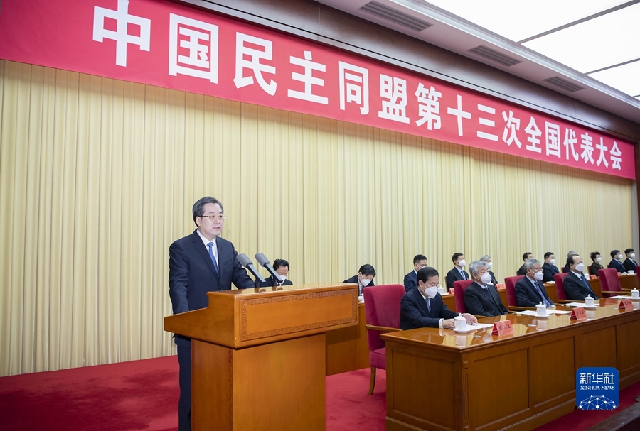 12月21日,中國(guó)民主同盟第十三次全國(guó)代表大會(huì)在北京開(kāi)幕。中共中央政治局常委、中央辦公廳主任丁薛祥出席開(kāi)幕式并代表中共中央致賀詞。新華社記者 李濤 攝