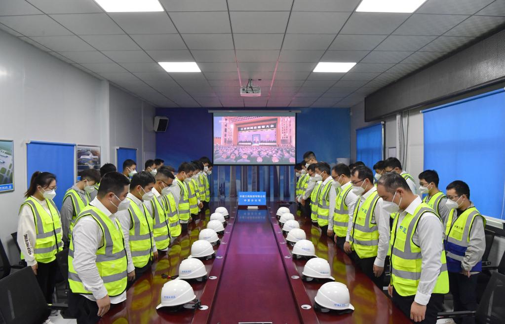 12月6日上午,中共中央、全國人大常委會、國務院、全國政協(xié)、中央軍委在北京人民大會堂隆重舉行江澤民同志追悼大會。舉國上下,各族人民沉痛悼念江澤民同志。這是在陜西西安的中鐵二十局集團,干部職工收看江澤民同志追悼大會直播。新華社記者 張博文 攝