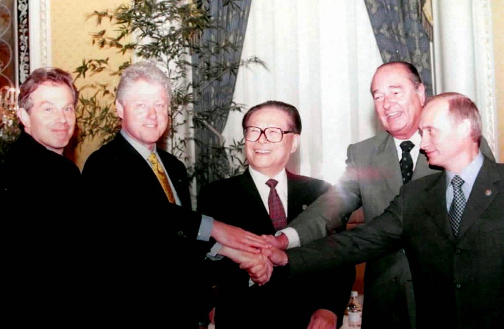 2001年10月21日,亞太經(jīng)合組織第九次領(lǐng)導(dǎo)人非正式會議在上海舉行。這是江澤民同志與參會的經(jīng)濟體領(lǐng)導(dǎo)人合影。新華社發(fā)