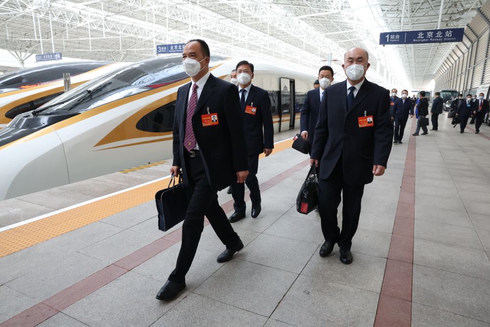 10月13日,來自內蒙古自治區(qū)的黨的二十大代表乘高鐵抵達北京北站。這是當日首個抵京的京外代表團。新華社記者 張玉薇 攝