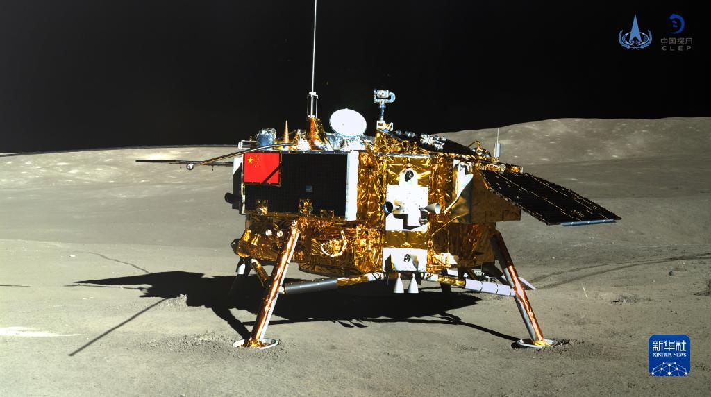 這是玉兔二號巡視器全景相機(jī)對嫦娥四號著陸器成像。 新華社發(fā)(國家航天局供圖)