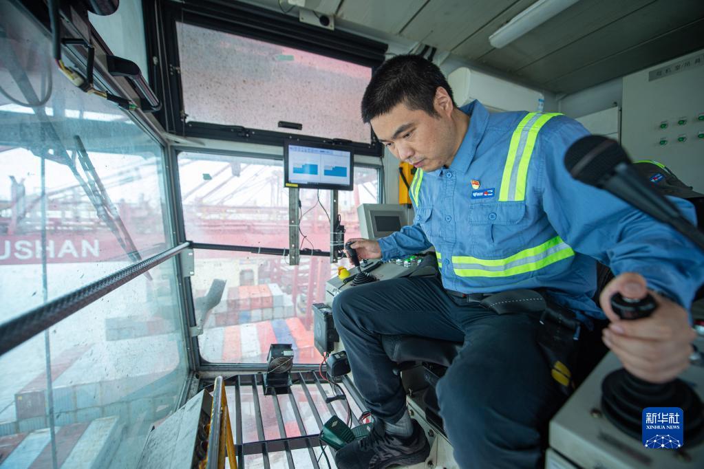 “我們見證了港口和國家的發(fā)展,正鉚足勁頭朝著打造世界一流強港的目標邁進。”正在碼頭作業(yè)的橋吊班大班長竺士杰說。