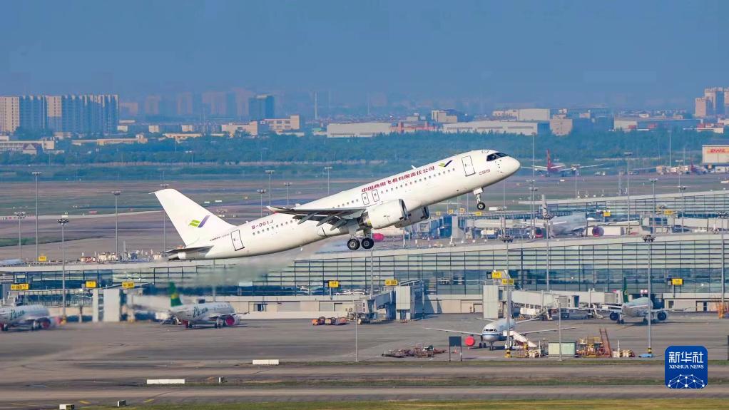 國慶前夕,北京首都國際機場停機坪上,兩架國產大飛機C919格外引人注目——我國首款擁有自主知識產權、具備國際主流水準的干線飛機正式取得適航證書。