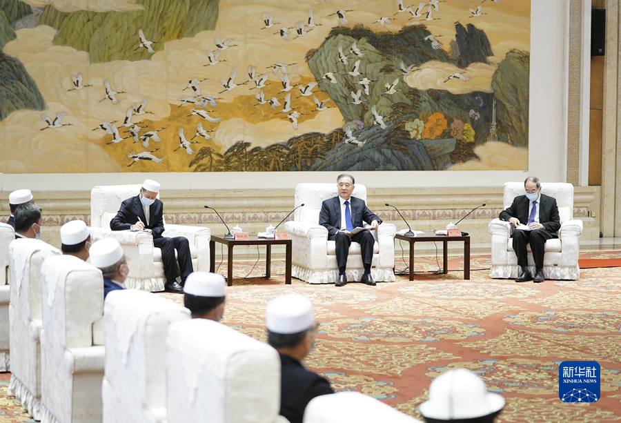 9月20日,中共中央政治局常委、全國政協(xié)主席汪洋在北京會見中國伊斯蘭教協(xié)會新一屆領(lǐng)導(dǎo)班子成員。新華社記者 燕雁 攝