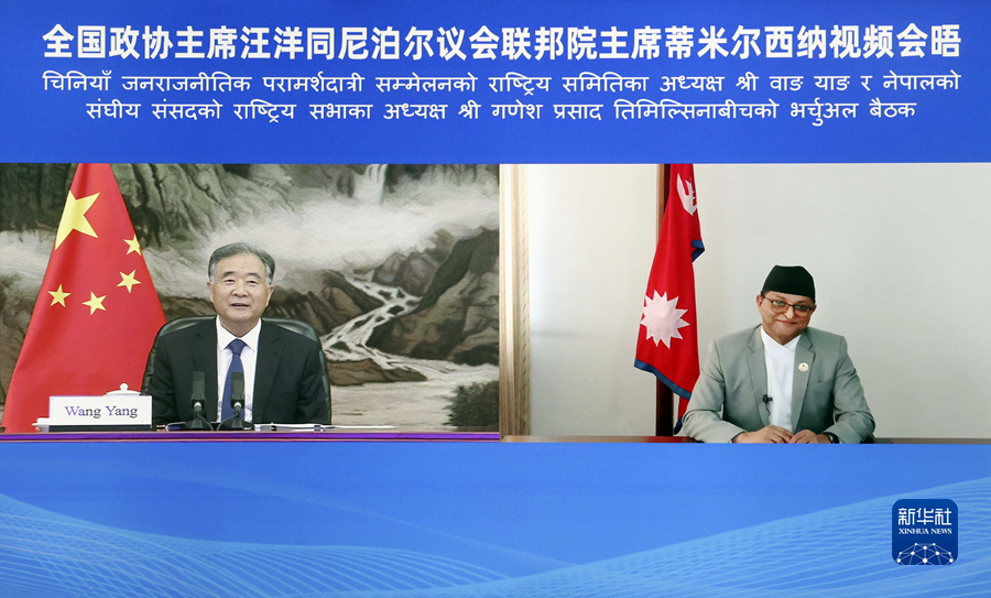 9月2日,全國政協(xié)主席汪洋在北京以視頻方式會見尼泊爾聯(lián)邦議會聯(lián)邦院主席蒂米爾西納。新華社記者 劉衛(wèi)兵 攝