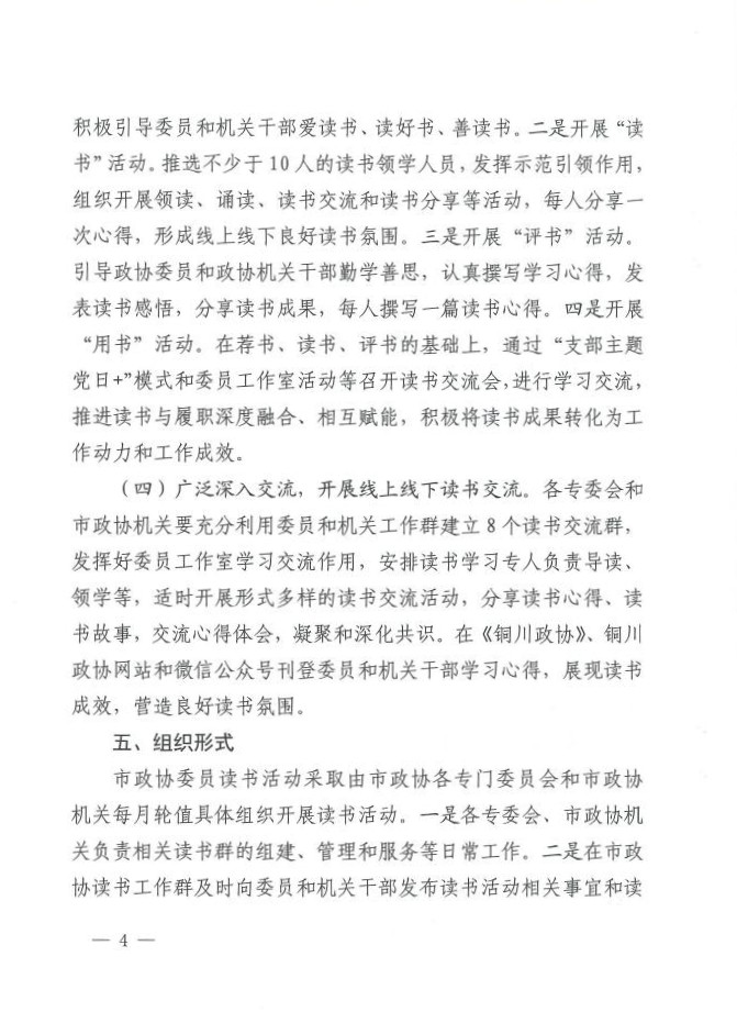 關(guān)于印發(fā)《市政協(xié)深化委員讀書活動(dòng)工作實(shí)施方案》的通知